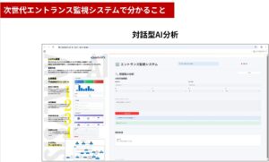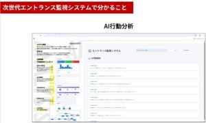 AI行動分析と対話型AI分析では、入口周辺で起きている状況をより深く読み解くことができます。施設の安全性向上や防犯体制の強化に加え、管理業務の効率化や運営品質の向上にもつながるソリューションとして、今後の活用が見込まれます。